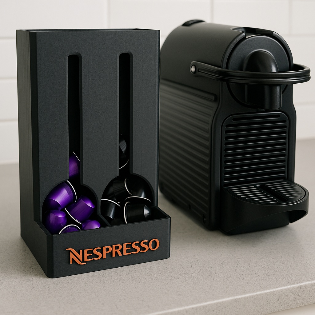 Savršen red na vašem kuhinjskom pultu počinje ovde. Dual Organizer za Nespresso kapsule elegantno rešava problem rasutih kapsula, držeći ih organizovanim i uvek pri ruci. Dva odvojena vertikalna kanala omogućavaju čuvanje različitih vrsta kapsula istovremeno, dok gravitacija obezbeđuje lako i intuitivno punjenje odozgo. Izrađen u mat crnoj završnoj obradi, organizer savršeno prati estetiku Nespresso aparata. Elegantni Nespresso logo u bakarnoj boji dodaje sofisticirani akcenat koji oplemenjuje svaki prostor. Kompaktni dizajn sa otvorenim kanalima omogućava brz vizuelni pregled dostupnih kapsula, a stabilna baza sa integrovanim ležištem sprečava njihovo rasipanje. Ovo nije samo organizator - to je detalj koji govori o vašem ukusu. Transformišite svoju jutarnju ritualnu kafu iz rutine u pravo iskustvo. Idealan poklon za ljubitelje kafe koji cene red, stil i funkcionalnost u jednakim delovima.
