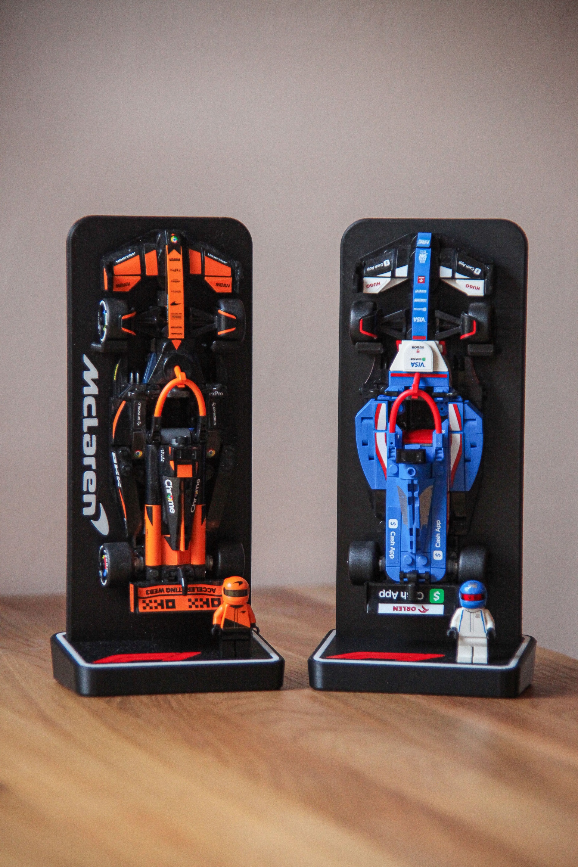 Svaki pravi ljubitelj Formule 1 zaslužuje više od pukog polica za izlaganje. Ovaj elegantni stalak transformiše vaš LEGO Speed Champions model u pravu galerijski eksponat. Vertikalni prikaz automobila donosi potpuno novu perspektivu – gledate vaš omiljeni bolid onako kako ga vide kamere iznad staze. Stalak je izrađen u crnoj mat završnoj obradi sa precizno urezan logom i bojama tima direktno na pozadini. Svaki detalj je osmišljen da savršeno uokviruje model – od aeropaketa do zadnjeg difuzora. Uz model dolazi i posebno mesto za minifiguru vozača, koja stoji ponosno ispred svog bolida. Dostupan za McLaren i Williams tim, sa mogućnošću izbora između 15 različitih timskih ploča. Više od dekoracije – ovo je izjava strasti prema Formuli 1. Savršen poklon za kolekcionare i ljubitelje brzine koji žele da svoje LEGO modele istaknu na jedinstven i upečatljiv način.