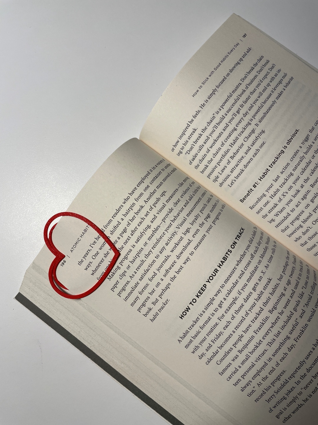 Marker stranice u obliku srca donosi nežan dodir ljubavi prema čitanju. Elegantna forma klipsa savršeno obuhvata stranicu, čuvajući vaše mesto bez oštećenja knjige. Svaki detalj odaje pažnju i brigu prema pravim ljubiteljima knjiga. Dostupan u više boja — crvenoj, tirkiznoj i crnoj — ovaj obeleživač se lako prilagođava vašem stilu i ličnosti. Izrađen od čvrstog materijala sa finim završnim slojem, čvrsto stoji na uglu stranice i ne klizi. Jego kompaktna forma ne smeta tokom čitanja, ali uvek ostaje vidljiva i prepoznatljiva. Savršen poklon za svakog čitaoca koji ceni lepe i funkcionalne detalje. Spojite strast prema knjigama sa nežnom estetikom — jer i mali predmeti mogu nositi veliku emociju.