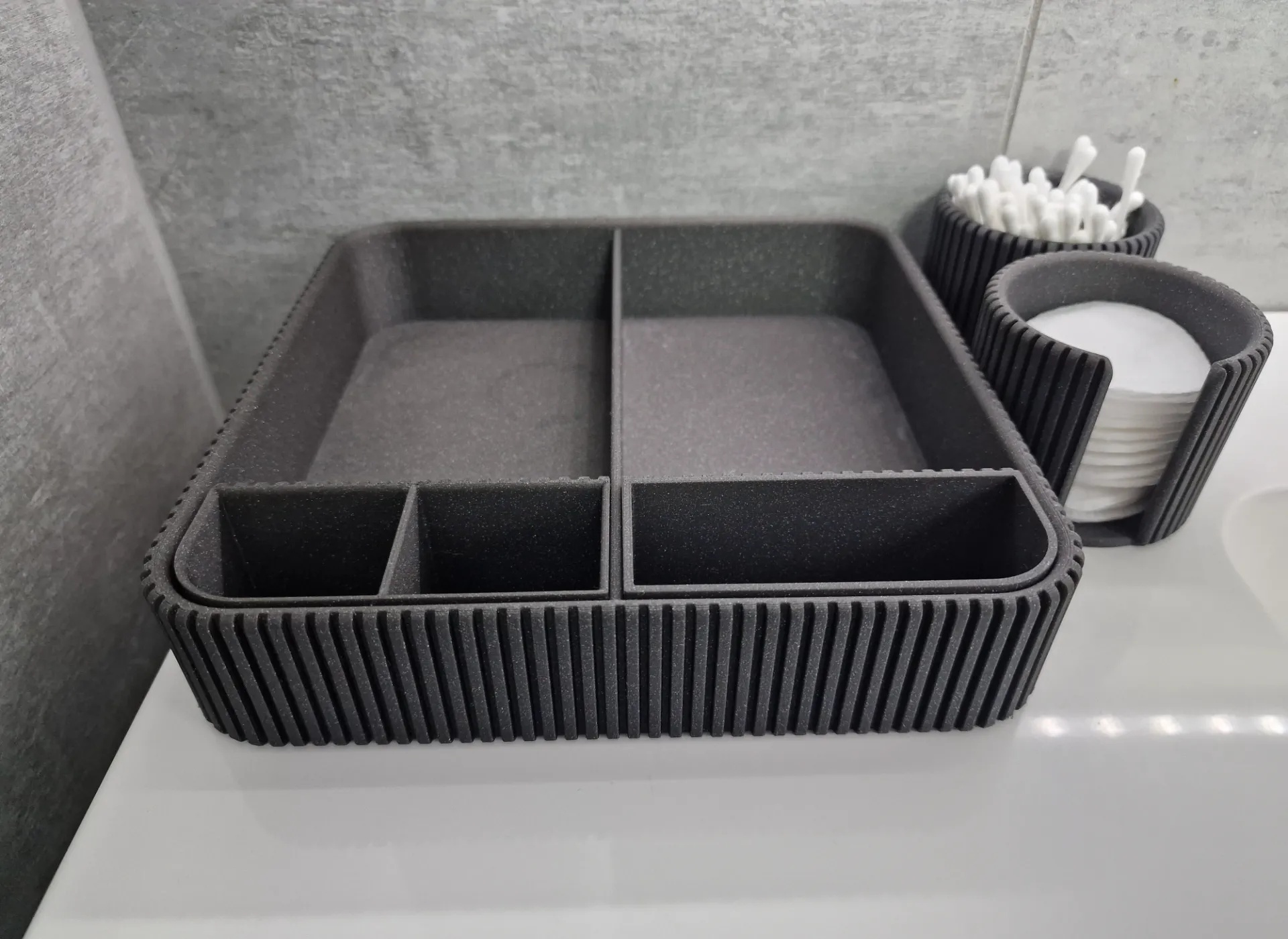 Uredite svoj prostor sa stilom uz Organizator za Kupatilo Tavo, savršen dodatak za svakodnevnu organizaciju. Ovaj elegantni organizator donosi harmoniju i red u vašu svakodnevnu rutinu, omogućavajući vam da sve neophodne sitnice budu na dohvat ruke. Njegov promišljen dizajn čini ga idealnim za čuvanje kozmetičkih proizvoda, pamučnih tufera i štapića, pružajući savršenu kombinaciju funkcionalnosti i estetike. Izrađen od visokokvalitetnih materijala, Tavo organizator se ističe svojim modernim izgledom i izdržljivošću. Njegova neutralna siva boja lako se uklapa u svaki enterijer, dok tekstura sa finim detaljima dodaje notu sofisticiranosti. Sa više pregrada različitih veličina, ovaj organizator omogućava lako sortiranje i pristup svim vašim kupatilskim potrepštinama, čineći ga nezamenjivim delom vašeg prostora. Investirajte u Organizator za Kupatilo Tavo i transformišite svoju svakodnevicu. Uživajte u urednom i elegantnom prostoru koji olakšava vašu jutarnju rutinu i unosi mir u vaše okruženje. Dodajte dašak luksuza i praktičnosti u svoje kupatilo već danas.