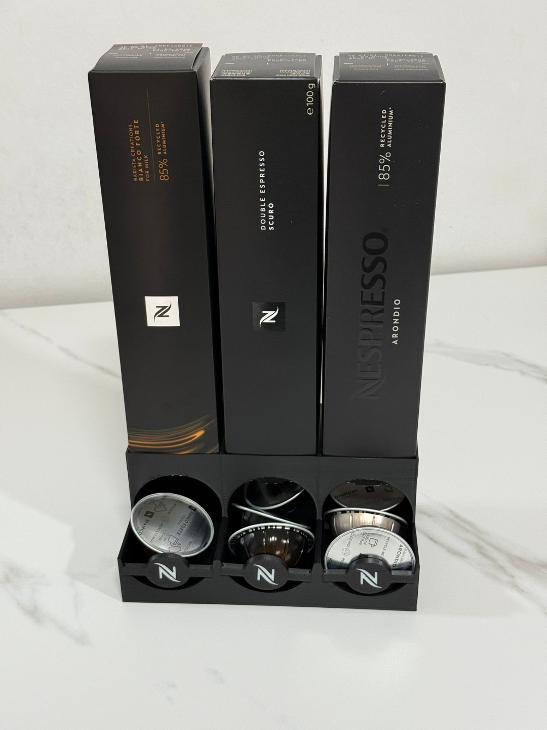 Savršen red na vašem kafe kutku počinje ovde. Ovaj elegantni organizer dizajniran je isključivo za Nespresso Vertuo kapsule, nudeći tri odvojena odeljka koja drže i kapsule i originalne kutije. Svaka jutarnja rutina postaje uživanje kada je sve na svom mestu. Matirani crni finish i gravirani Nespresso logo čine ovaj organizer pravim ukrasom kuhinje ili radne površine. Tri karakteristična okrugla otvora na prednjem delu pružaju lak pristup kapsulama, dok gornji deo organizuje kutije od kojih svaka može da stoji uspravno. Dizajn je promišljen do najsitnijeg detalja. Kompatibilan sa svim Vertuo kapsulama različitih boja i varijanti — od Double Espresso Scuro i Arondio do Ice Leggero i Pumpkin Spice Cake. Ovaj organizer je idealan poklon za svakog ljubitelja kafe. Transformišite svoj kafe kutak u pravi mini-butik iskustvo.