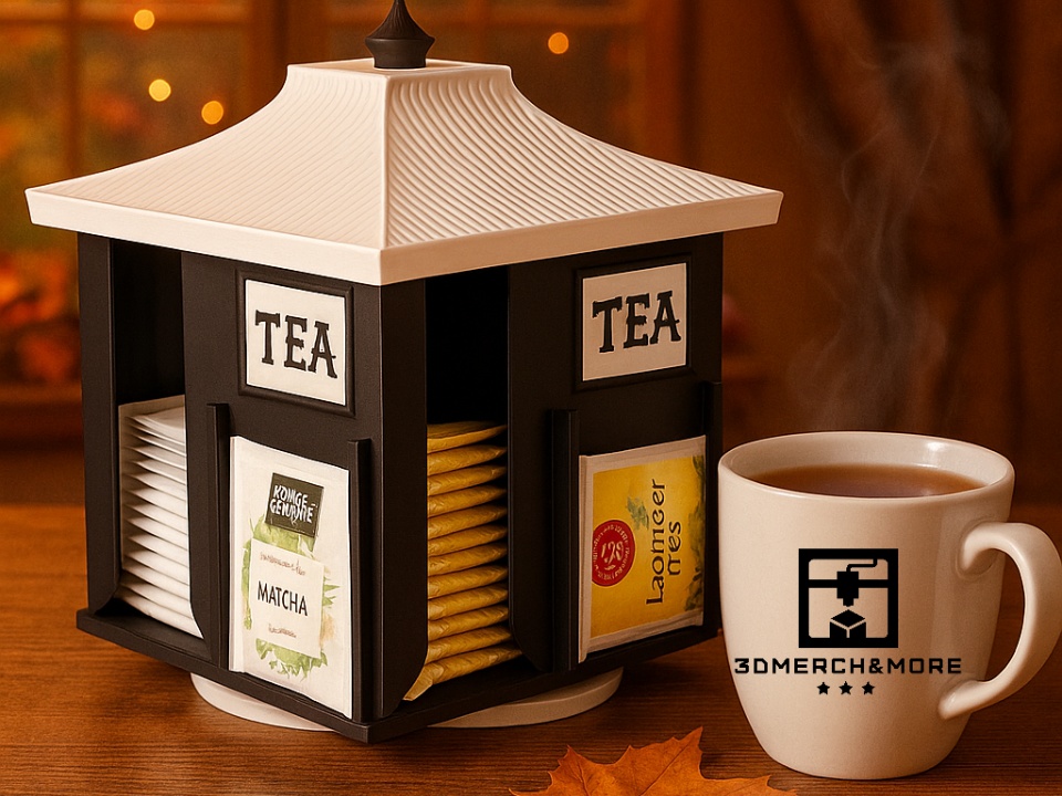 Rotirajući organizer za kesice čaja donosi duh japanske arhitekture direktno na vaš kuhinjski pult. Pagoda dizajn sa karakterističnim zakrivljenim krovom u krem boji i elegantnim crnim telom stvara pravi mali umetnički objekat. Više od pukog organizera - ovo je dekorativni komad koji transformiše svakodnevni ritual pripreme čaja u estetsko iskustvo. Višestrana struktura nudi više odvojenih pregrada za različite vrste kesica čaja. Rotirajuća osnova omogućava lak pristup svakoj pregradi jednim pokretom ruke. Kontrastna kombinacija crne i krem boje savršeno se uklapa u moderne i rustikalne enterijer stilove. Svaka pregrada jasno prikazuje sadržaj, što čini izbor čaja brzim i intuitivnim. Ovaj organizer je idealan poklon za ljubitelje čaja koji cene red i lepotu u jednakoj meri. Izrađen tehnologijom 3D štampe, svaki komad nosi pečat pažljive izrade i jedinstvenosti. Neka vaša zbirka omiljenih čajeva dobije prostor koji zaslužuje.